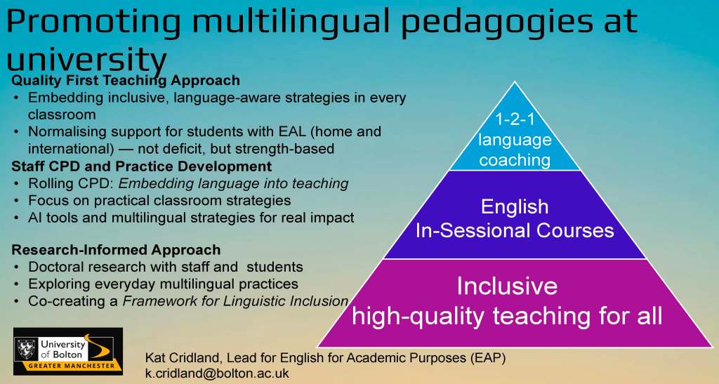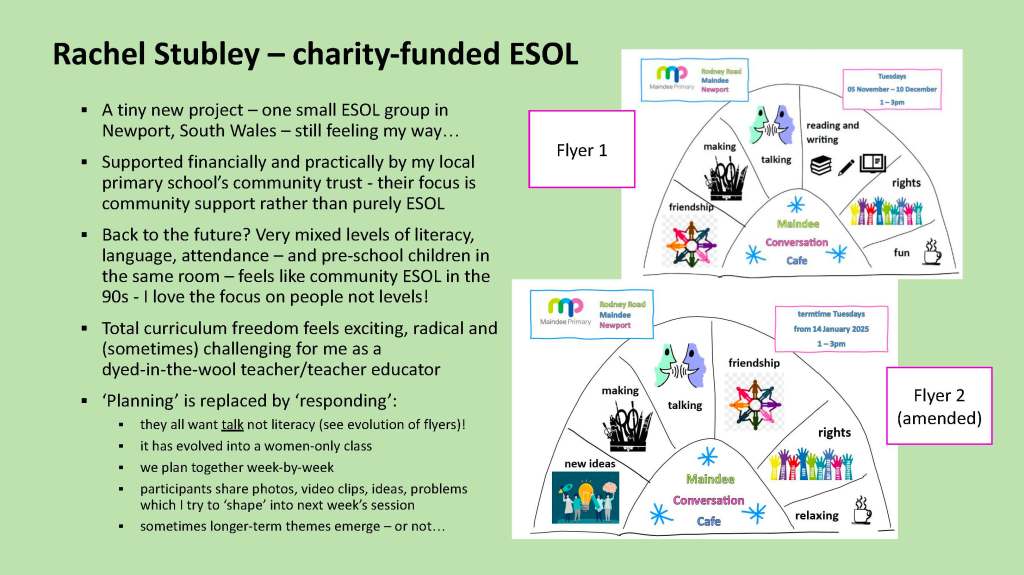 We asked participants at our event in March 2025 if they would like to send us a slide illustrating an aspect of their practice that went ‘beyond the current norms and limitations of language education’, and here is what they provided.
